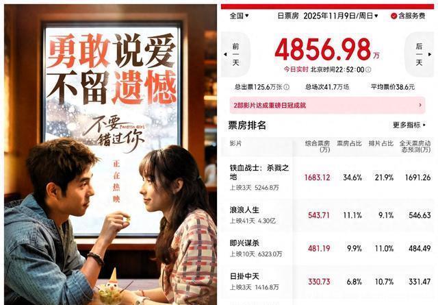 11月9日,在票房方面,给大家一个惊喜的电影是《不要错过你》,全天收割票房230万,属于爱情题材类型,从片名来看,也毫无吸引力,从演员和导演的角度来看,也非常一般,但该电影自命不凡,自上映以来,虽然票房不算突出,但也绝不拉胯,目前累计票房已突破1000万。 来自海外的科幻大片《铁血战士:杀戮之地》,排片最高,收割1690万票房,引进方一定很高兴,目前内地累计票房已突破5000万,该电影的全球票房也很不错,已经达到2000多万美刀,但就目前的票房占比来看,内地市场的贡献不容小觑。