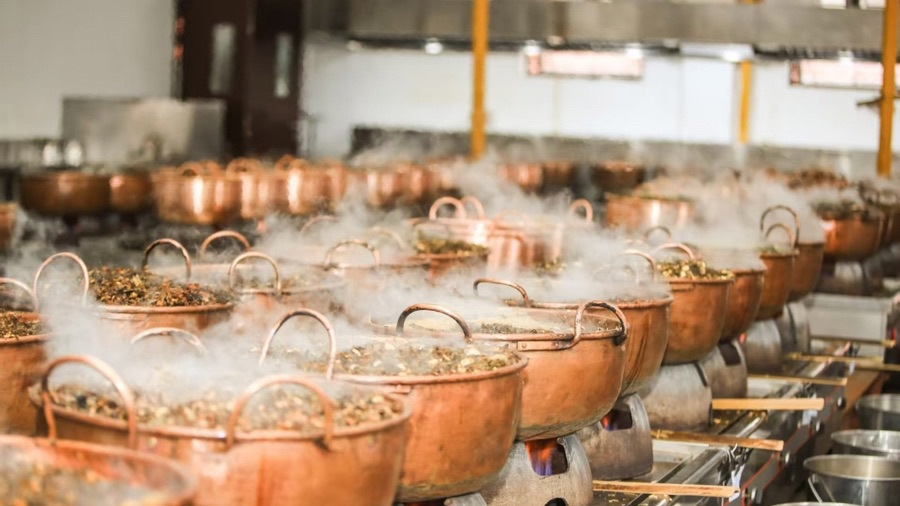 热气腾腾的膏方制作间内,随着浸泡6个多小时的第一批膏方药材正式入锅,100口紫铜锅的炉火熊熊燃烧,经过老药工们的不断搅拌,一阵阵浓郁的药香扑面而来……今天是立冬时节,上海中医药大学附属岳阳中西医结合医院(以下简称岳阳医院)拉开了冬季养生的序幕。
